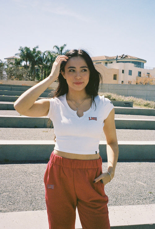 Our digital-native brand is revolutionizing the college t-shirt industry, traditionally dominated by men's styles, by introducing a collection tailored for women. Embrace school pride with flair through our wide array of tees, from Cali tees and baseball tops to button-up shirts and homerun tees. We're here to add a newer voice with diverse styles including mesh tees, checkmate t-shirts, retro looks, brandy tees, rugby t-shirts, cut off t-shirts, touchdown tees, and a broad selection of tops that cater to every collegiate enthusiast.